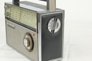 Das Kofferradio aus Japanischer Produktion stammt vermutlich aus den Jahren 1965/1955. Das Gerät ist relativ schwer, wobei der gepolsterte Griff das Tragen erleichtert. Mehrere Wellenbereiche stehen zur Verfügung. MW/LW/UKW und mehrere KW Bänder. Geschaltet werden sie über einen großen Drehschalter auf der Seite. Eine Senderskala im herkömmlichen Sinn gibt es nicht. Dafür sind Sendefrequenzen angegeben.