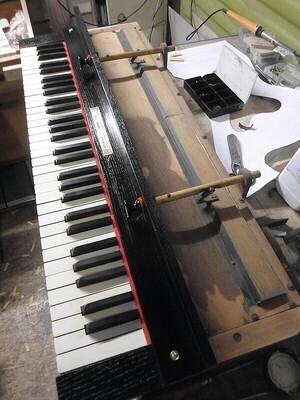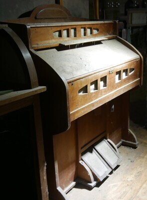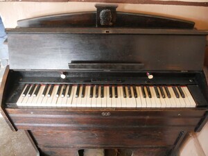 Einmanualiges Druckwind-Harmonium im Schulraum