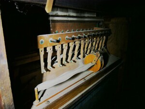 Harmonium, etwa 1920er Jahre, ohne Herstellerbezeichung Hersteller warscheinlich Lindholm Manualtrennung h-c' 5 Oktaven Umfang F# bis c''' Disposition: Bass: Forte Aelosharfe 2' Cornettino 2' Diapason 8' Piano 8' Bass Koppler Voxhumana Dsikant Koppler Diskant: Echo 8' Melodia 8' Oboe 8' Vox celeste 8' Forte