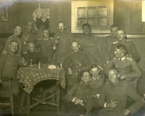 SW-Fotografie von Edenkoben mit den charakteristischen Türmen der beiden christlichen Kirchen. Rechts die 1890 vollendete katholische Stadtpfarrkirche St. Ludwig, links die protestantische Stadtpfarrkirche, die auf einen Bau von 1438 zurückgeht. Der Betrachterstandpunkt liegt etwa 200 m westlich vom Bahnhof entfernt. Das auf dem Foto im Vordergrund zu sehende Rebgelände ist heute weitgehend überbaut. Im Historischen Museum der Pfalz war vom 29.4.2014 bis 24.9.2017 die Ausstellung "1914 - 1918. Die Pfalz im Ersten Weltkrieg" zu sehen. Auf einen öffentlichen Aufruf hin meldeten sich zahlreiche Privatpersonen, ihre Objekte wurden in dieser Sammlung erfasst und z. T. auch in der Ausstellung gezeigt. Die Objekte befinden sich im Eigentum der Privatpersonen und sind nicht Teil der Sammlungen des Historischen Museums der Pfalz.