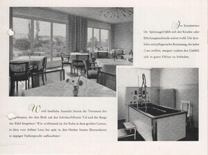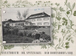 Sechsseitiger seitlich auffaltbarer Flyer mit Beschreibungen von Bad Bodendorf, dem Sanatorium mit seinem Behandlungsangebot. In den Flyer sind eingelegt die Mitteilung, das Preisblatt für Privatpatenten (Signatur 1029_D_1-02) und wer nach dem Tod von Dr. Spitznagel die neue medizinische Leitung des Sanatoriums übernimmt (Signatur 1029_D_1-03).