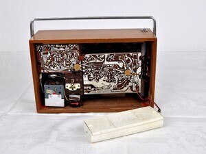 Selten, ein Kofferradio in echtem Holzgehäuse. In den beiden Jahren 1966/1967 hat Schaub Lorenz dieses Transistorradio gebaut. Das Reisegegät lässt sich mit 6 x 1,5 Volt Batterien und über einen Anschluss auf der Rückseite auch über das Stromnetz betreiben. An Wellenbereichen stehen UKW, LW und MW zu Verfügung. Anschlüsse für externe Geräte gibt für Tonband, Plattenspieler, Kopfhörer, Antenne und Erde