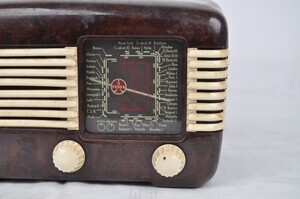 Ein tschechisches, kleines Tischgerät aus den Jahren 1951/1952. Das Radio ist mit 4 Röhrenbestückt und kann mit 110 oder 220 Volt betrieben werden. Hörbar sind Sender der LW/KW oder MW.Mit dem mittleren Drehknopf auf der Vorderseite, lassen sich die Sender einstellen, wobei ein grosser, weisser Zeiger die Stationen anzeigt. Anschlussmöglichkeiten für externe Geräte gibt es keine.