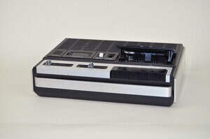 Tragbarer Kassettenrecorder von Saba aus dem Jahr 1977. Betriebsbereit ist der Recorder mit 6x 1,5 Volt Batterien, 220 V oder über einen separaten Anschluss mit 9 Volt. Dies handliche Reisegerät wurde 3 Jahre lang, von 1975 bis 1978 produziert. Alle wichtigen Bedienelemente, einschließlich dem Zugang zum Kassettenfach sind auf der Oberseite verbaut. Ebenso das eingebaute Microfon samt Aussteuerungspegel, einem Kippschalter für die Bandwahl und zwei Schieberegler für Lautstärke und Klangfarbe. Hinter der seitlichen Abdeckung befinden sich die Anschlüsse für Radio, Kopfhörer und ein externes Micro. Der Ladenpreis lag etwa bei 550 DM