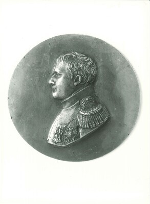 Schwarzweißfotografie. Diese Aufnahme zeigt ein in der Sayner Hütte gefertigtes Medaillon mit Darstellung der "Madonna della sedia" nach Raffael mit Jesuskind auf dem Arm und einem Engel im Hintergrund. Das kreisförmige Gemälde von Raffael (Florenz, Palazzo Pitti, um 1513/14) wurde durch zahlreiche Stiche vervielfältigt. Posch benutzte vermutlich den Stich von Raffael Morghen oder den von J. G. von Müller (Hintze S. 104) und hat das Modell in drei verschiedenen Größen hergestellt. Die Kunstgießerei Lauchhammer hat ebenfalls in drei verschiedenen Größen das Medaillon gegossen (Dm. 60, 105, 390 mm). In Gleiwitz wurde es ohne (Dm. 120 mm) und mit Rahmen (190 x 220 mm) angeboten. Das Motiv kommt außerdem auf einem rechteckigen Wandrelief oder - sehr verkleinert - als Element von Schmuckstücken vor (Willmuth Arenhövel: Eisen statt Gold. S. 91). In Sayn wurde es nur in einer Größe produziert (Dm. 10,5 mm).