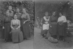 Schwarz/weiß Aufnahme von zwei Frauen und zwei Männern mit einem Schlitten Im Historischen Museum der Pfalz war vom 29.4.2014 bis 24.9.2017 die Ausstellung "1914 - 1918. Die Pfalz im Ersten Weltkrieg" zu sehen. Auf einen öffentlichen Aufruf hin meldeten sich zahlreiche Privatpersonen, ihre Objekte wurden in dieser Sammlung erfasst und z. T. auch in der Ausstellung gezeigt. Die Objekte befinden sich im Eigentum der Privatpersonen und sind nicht Teil der Sammlungen des Historischen Museums der Pfalz.