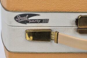 Ein kleiner, handlicher Plattenspieler der in den Jahren 1959/1960 als transportables Gerät im Koffer produziert wurde. Die Stromversorgung erfolgt ausschließlich über 220 Volt. Eine Endstufe ist nicht eingebaut, so dass zum Platten hören entweder ein Kopfhörer oder ein Verstärker erforderlich ist. Es stehen insgesamt vier Geschwindigkeiten zur Verfügung. 16 / 33 / 45 und 78 UpM. Nahezu unbekannt ist die 16er Drehzahl. Sie wurde gebraucht für reine Sprachaufnahmen ohne große Qualitätsansprüche. ( Fernlernkurse, Sprache, Märchenplatten) Die Anschlüsse für Strom und für den Verstärker sind hinter einer Abdeckung auf der Rückseite zugängig. Für ca. 120 € konnte das Gerät erworben werden.