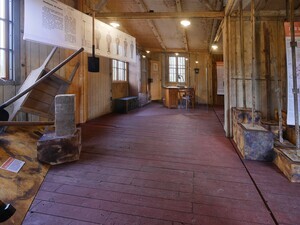 Reichsarbeitsdienstbarackevom Typ RL IV. Die Baracke war von Kriegsende bis zur ihrem Wiederaufbau ab 2017 in der Eifel eingelagert und der mündlichen Überlieferung nach als Leitstelle für eine V1-Abschussanlage genutzt. Dieser Type wurde vom Reichsarbeitsdienst 1934 als Mannschaftsbaracke entwickelt und ab 1937 in vielen Lagern eingesetzt. Wie vergleichbare Barackentypen wurde er entworfen um zeitsparend und kostengünstig auf- und wiederabgebaut sowie transportiert zu werden. Konstruiert ist die Baracke in einer Modulbauweise, alle Teile wie Wand, Boden, Decken etc. waren genormt und konnten in einer Art Stecksystem mittels Schrauben zusammengefügt werden. Je nach Zweck konnten beliebig viele Elemente aneinanergereiht werden und es konnten so ausser Mannschaftsbaracken auch Küchen-, Abort-, Wasch-, und Verwaltungsbaracken errichtet werden. Dieser Barackentyp existierte neben anderen auch in Konzentrationslagern, Wehrmachtseinrichtungen und wurde zur Unterbringung von Kriegsgefangenen und Zwangsarbeitern genutzt. Nach dem Krieg dienten er zur u.a. Unterbrinung von Flüchtlingen in Notunterkünften und wie in Trier auch als Notkirche.