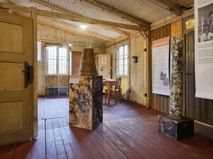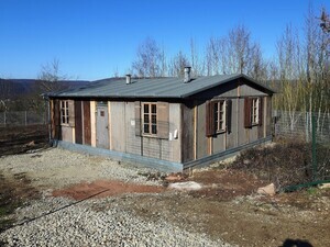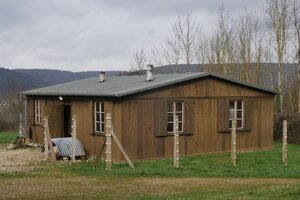 Reichsarbeitsdienstbarackevom Typ RL IV. Die Baracke war von Kriegsende bis zur ihrem Wiederaufbau ab 2017 in der Eifel eingelagert und der mündlichen Überlieferung nach als Leitstelle für eine V1-Abschussanlage genutzt. Dieser Type wurde vom Reichsarbeitsdienst 1934 als Mannschaftsbaracke entwickelt und ab 1937 in vielen Lagern eingesetzt. Wie vergleichbare Barackentypen wurde er entworfen um zeitsparend und kostengünstig auf- und wiederabgebaut sowie transportiert zu werden. Konstruiert ist die Baracke in einer Modulbauweise, alle Teile wie Wand, Boden, Decken etc. waren genormt und konnten in einer Art Stecksystem mittels Schrauben zusammengefügt werden. Je nach Zweck konnten beliebig viele Elemente aneinanergereiht werden und es konnten so ausser Mannschaftsbaracken auch Küchen-, Abort-, Wasch-, und Verwaltungsbaracken errichtet werden. Dieser Barackentyp existierte neben anderen auch in Konzentrationslagern, Wehrmachtseinrichtungen und wurde zur Unterbringung von Kriegsgefangenen und Zwangsarbeitern genutzt. Nach dem Krieg dienten er zur u.a. Unterbrinung von Flüchtlingen in Notunterkünften und wie in Trier auch als Notkirche.