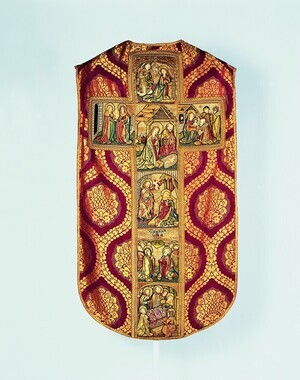 Dargestellt werden vier Passionsszenen: Rechts oben in einem von Säulen flankiertem Raum die Fußwaschung Christi, darunter befindet sich eine unleserliche Inschrift. Darunter Christus mit den Jüngern im Garten Gethsemane; links daneben der Verrat des Judas, der Christus auf die Wange küßt, hinter ihnen die Häscher. Am linken Bildrand Petrus, dem Häscher Malchus ein Ohr mit dem Schwert abschlagend, dahinter die Zinnen Jerusalems. Unleserliches Schriftband unter dem Bildfeld. Darunter weitere, nicht identifizierbare Szenen, möglicherweise Geißelung und Verspottung Christi sowie die Handwaschung des Pilatus.
