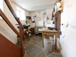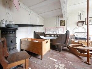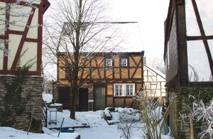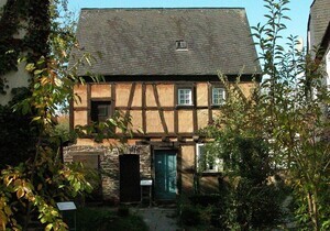 Erbaut: 2. Hälfte des 18 Jhdts. Abgebaut: 1980 Wiedererrichtet: 1986 (Kreis Cochem-Zell) Das Bild zeigt das Hirtenhaus aus Lieg, das den Hausnamen "Kläsjeshaus" trägt. Zweistöckiges, zweiraumtiefes Wohn-Stall-Haus, Wohnteil aus Fachwerk, Stallteil aus Schieferbruchsteinen. Das schlichte Fachwerkgebäude war bis 1845 das Schweinehirtenhaus der Gemeinde Lieg. Das Fachwerk wurde vollständig mit zweitverwendetem Holz erbaut. 1857 wurde es an den Schneider Johannes Nikolaus Wickert ("Kläsje") verkauft, auf den sich wahrscheinlich der Hausname bezieht. Vor dem Haus ist links der Mistplatz mit Jauchepumpe zu erkennen. Im Obergeschoß befinden sich eine Räucherkammer sowie die Schlafstuben für die Eltern und Kinder. In dem für den Heuvorrat vorgesehenen Raum ist eine Werkstatt zur Herstellung von Sensen eingerichtet.