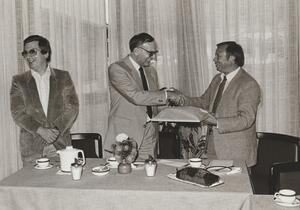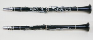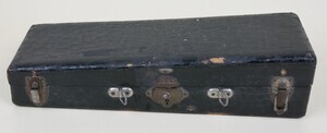 Klarinette Ebenholz, 5-teilig, 20 Klappen Herstellerinschrift mi goldener Schrift am Kopfteil, darüber Firmenlogo RICH. KEILWERTH GES. GESCHÜTZT Am Mundstück ist eine 1 eingeprägt Das originale Etui ist ebenfalls erhalten Die Richard Keilwerth Musik-GmbH & Co. KG aus Gelnhausen ist ein seit 1920 bestehender Familienbetrieb und wurde von Johann Baptist Keilwerth gegründet. Sein Enkel Thomas Keilwerth führt das Geschäft bis zu seinem Tode im März 2019. Seitdem ist die Produktion eingestellt. Das Instrument gehörte Kurz Lorenz aus Koblenz, verst. 1954 (Motorradunfall). Er spielte als Hobbymusiker vor und nach dem 2. Weltkrieg in der Ungebung von Koblenz. Etui 39cm b 12 bis 13cm h 5 bis 6 cm