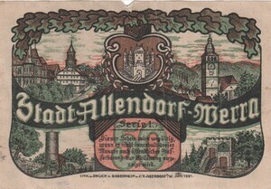 Fünfzig Pfennig Notgeld Stadt Allendorf a.d. Werra