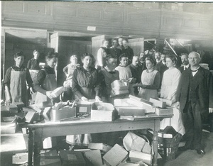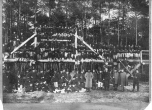 Schwarz/weiß Gruppenaufnahme von Soldaten an Tischen im Freien. Vermutlich 1917 aufgenommen, da auf dem Foto höchstwahrscheinlich Franz Seitzmayer abgebildet ist, der am 11. Februar 1917 der 2. Ersatz-Abteilung des Königlich Bayerischen 2. Pionierbataillons zugeordnet wurde und im September 1917 unter anderem in Verdun eingesetzt wurde. Im Historischen Museum der Pfalz war vom 29.4.2014 bis 24.9.2017 die Ausstellung "1914 - 1918. Die Pfalz im Ersten Weltkrieg" zu sehen. Auf einen öffentlichen Aufruf hin meldeten sich zahlreiche Privatpersonen, ihre Objekte wurden in dieser Sammlung erfasst und z. T. auch in der Ausstellung gezeigt. Die Objekte befinden sich im Eigentum der Privatpersonen und sind nicht Teil der Sammlungen des Historischen Museums der Pfalz.