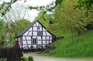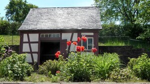 Erbaut: 1807 Umgebaut: 1928 Abgebaut: 1986 Wiedererrichtet: 1988 (Kreis Bernkastel-Wittlich) Das Gebäude war ursprünglich ein schlichtes Tagelöhnerhaus am Dorfrand von Irmenach. Es wurde erst 1928 nach dem Tod seiner letzten Besitzerin zur Schmiede umgebaut. Dargestellt wird eine Hunsrücker Nagelschmiede der 30er Jahre. Hier wurden unter anderem Nägel für Zimmerleute, Dachdecker und Schuster her- gestellt. Die unteren Fotos zeigen Innenansichten der Schmiede, wie sie im Freilichtmuseum zu besichtigen sind. Das Gebäude wurde 1807 erbaut und diente anfangs als schlichtes Wohnhaus am Dorfrand von Irmenach (Kreis Bernkastel-Wittlich). Das ehemalige Haus Franz war das Wohnhaus des Beisassen Michel Franz, dessen Tochter Susanna Franz ein uneheliches Kind bekam. Einmal mit einem unehelichen Kind gezeichnet, folgten zwei weitere uneheliche Töchter 1800 und 1808. Die offizielle Meinung über ledige Mütter dieser Zeit läßt sich aus dem Geburtseintrag im Kirchenbuch für das dritte Kind herauslesen: "Maria Katharina: Eine uneheliche, der leichtfertigen Dirne Susanna Franzin, weiland Michel Franzen, Nagelschmieds nachgelassene Tochter. Es ist dieses das dritte Mal, daß diese lasterhafte Weibsperson unehelich niedergekommen ist." Die kurz vor 1800 geborene Susanna Franz bekam ihrerseits 1828 eine uneheliche Tochter, die nach der Großmutter Anna Katharina genannt wurde. Auch diese bekam - kaum zwanzigjährig - eine Tochter, ohne verheiratet zu sein. Die 1848 geborene Susanna Elisabetha Franz lebte bis 1918. Sie ist älteren Einwohnern Irmenachs noch als "Sosies Lies" bekannt. Bis zu ihrem Tod war sie Botenfrau und fuhr unter anderem wöchentlich mit dem Handwagen nach Trarbach, um dort von Irmenacher Bauern hergestellte Butter zu verkaufen. Wahrscheinlich erledigte sie dabei auch andere Botengänge und betrieb einen kleinen Hausierhandel. Es erübrigt sich festzustellen, daß auch "Sosies Lies" nie verheiratet war und ein uneheliches Kind hatte. Erst in den späten zwanziger Jahren dieses Jahrhunderts wurde es zur Werkstatt umgebaut. Vergleicht man das Gebäude mit dem ursprünglich nur wenige Kilometer entfernten Haus Molz , erkennt man, daß es im Mittelalter und in der Frühneuzeit auch innerhalb der ländlichen Bevölkerung zu einer sozialen Differenzierung und damit zum Entstehen zweier unterschiedlicher Sozialgruppen kam. Die geringe Grundfläche von 66 qm weist dieses Haus als Wohnhaus eines Tagelöhners (später: Beisasse) aus, einem Angehörigen der sozialen Unterschicht innerhalb der Dorfgemeinde. An dem kleinen Schmiedegebäude, das heute im Freilichtmuseum Roscheider Hof steht, läßt sich deutlich die Beziehung zwischen sozialer Stellung und Wohnweise seiner Bewohner ablesen. Mit der Zugehörigkeit zu einer bestimmten Schicht war praktisch vorgegeben, wie man wohnte und umgekehrt wurde man durch eine bestimmte Art zu wohnen als Angehöriger einer bestimmten Schicht ausgewiesen. Als ein benachbarter Bauer das Gebäude nach dem Tod seiner letzten Bewohnerin, der sogenannten "Sosies Lies" aufkaufte und zur Hofschmiede umbaute, bewirkte dies einige Veränderungen: die Tür befand sich damals anstelle des Fensters rechts, wo die ursprüngliche Türfassung noch zu erkennen ist. Die breite Eingangstür wurde erst 1928 statt eines Fensters eingebaut.