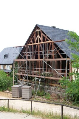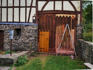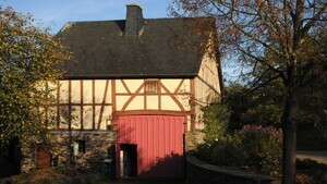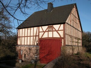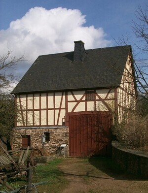 Diese Art Gebäude, die die Funktionen von Stall und Scheune unter einem Dach vereinen, waren bis vor wenigen Jahren auf dem Hunsrück weit verbreitet. Sie entstanden meist als Folge der Einführung der Stallhaltung des Viehs um die Mitte des 19. Jahrhunderts. Die charakteristischen Scheunentore fallen heute noch im Ortsbild vieler Hunsrückdörfer auf. Das Dach ist schiefergedeckt.