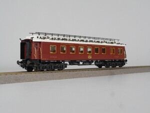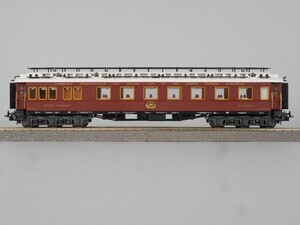 Trix International 23793 6-achsiger Luxus-Speisewagen der C.I.W.L (Compagnie Internationale des Wagons-Lits). Baujahr 1906. Faltenbälge an den Stirnseiten zum geschützten Übergang in den nächsten Wagen "Durchgangswagen"; "D-Zug". Wagenkasten rot mit bunter Beschriftung, Dach weißgrau mit Oberlichtaufbau, Lüftern, Laufstegen und Griffstangen ; Fahrgestell schwarz mit weißer Beschriftung. Betriebsnummer "1687 D". Ausgestattet mit Innenbeleuchtung. In originaler Kunststoff-Verpackung. Beiliegend Bogen mit selbsklebenden Zuglaufschildern. Nenngröße H0 (Maßstab 1:87), 2-Leiter Gleichstrom-System Epoche 1 (Länderbahn-Zeit 1835 - 1920)