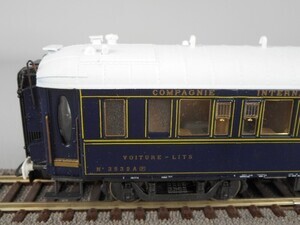 Rivarossi 2567 4-achsiger Luxus-Schlafwagen der C.I.W.L (Compagnie Internationale des Wagons-Lits). Ganzstahl-Bauweise. Faltenbälge an den Stirnseiten zum geschützten Übergang in den nächsten Wagen "Durchgangswagen"; "D-Zug". Wagenkasten blau mit goldener Beschriftung, Dach weiß mit Lüftern ; Fahrgestell schwarz mit weißer Beschriftung. Betriebsnummer "3523 A". Ausgestattet mit Innenbeleuchtung. In originaler Verpackung. Beiliegend Bogen mit selbsklebenden Zuglaufschildern. Nenngröße H0 (Maßstab 1:87), 2-Leiter Gleichstrom-System Epoche 2 (Staatsbahn-Zeit 1920 - 45)