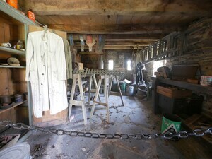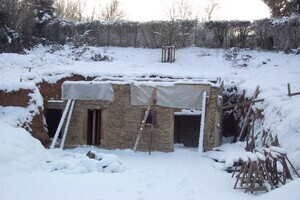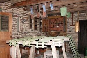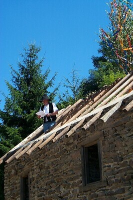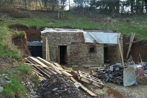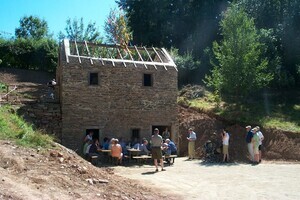 Bereits im Sommer 1999 baute das Freilichtmuseum im Konzer Stadtteil Oberemmel dieses steinerne Nebengebäude aus dem Jahr 1754 ab. Gegen eine Böschung gelehnt, wurde das Untergeschoss als ebenerdiger Keller genutzt. Der über einen steilen seitlichen Aufgang zugängliche erste Stock war wohl ursprünglich Werkstatt, wurde jedoch zeitweise auch als Schlafraum und später als Hühnerstall genutzt. Der Wiederaufbau dieses Gebäudes begann im Jahr 2000. Das Haus Schu-Schmitten kommt aus Oberemmel. Es ist ein Hofnebengebäude, wie man sie vielfach in unserer Gegend findet. Schu-Schmitten ist der Hausname, der bis in die Zeit des frühen 19. Jh. zurückgeht. Das Haus hat ebenerdig zwei Türöffnungen, die in die gewölbten Keller führen, die einen gestampften Lehmboden aufweisen. Die Kellergewölbe, wahrscheinlich über einem Erdkern errichtet, wurden wohl schon immer als Vorratsräume für Kartoffeln, Runkelrüben und dergleichen genutzt. Auch das Viezfass hatte dort seinen Platz. Das erst beim Abbau entdeckte dritte Gewölbe, seitlich vom linken Keller abgehend, ist bezüglich seines Zwecks noch nicht restlos geklärt. Merkwürdig ist, dass es ins Nachbargrundstück hineinreichte u d dort evtl. auch noch weiterging. Beim Abbau des Hauses haben wir den Zugang nur dadurch entdeckt, daß er in anderer Weise vermauert war. Wahrscheinlich hat dies Gewölbe in Notjahren als Geheimkeller, als Versteck für Lebensmittel und andere wertvolle Dinge gedient. Vom Vater des letzten Hausbesitzers, Herrn Hermann Zimmer, wissen wir einiges über das Haus und seine Nutzung: Anfang des 19. Jh. diente der 1. Stock, der den Hang hinauf durch eine Tür an der linken Seite zu erreichen ist, als Schlafraum für die vier Söhne der Familie. Es heißt, dass sie später nach Amerika ausgewandert seien. Als der erste Stock nicht mehr als Schlafstätte genutzt wurde, war dort eine Werkstatt eingerichtet. Zeitweise war dort auch ein großer Webstuhl aus dicken Eichenbalken aufgestellt. Die Wände des Hauses sind aus dicken Schieferbruchsteinen aufgeführt, die wir nach hier übernommen haben. Fehlende Steine haben wir duch den Abbau alter Weinbergsmauern gewonnen. Das Haus war nur teilweise verputzt. Die Tür- und Fenstergewände bestehen aus Eichenholz. Im Sturz über der rechten Tür ist die Jahreszahl 1754 zu erkennen. Das Jahr der Erbauung wird auch durch eine inzwischen vorgenommene dendrochronologische Datierung bestätigt. Über dem Türsturz ist ein kleiner Sandstein eingelassen, auf dem ein nach oben gerichteter Pfeil zu erkennen ist. Es handelt sich um eine der in Oberemmel gebräuchlichen Hauszeichen, die auch auf dem noch vorhandenen "Rosenkranz" vorkommen, der Loskette, die bei der Verteilung der einzelnen Schläge im Gehöferschaftswald eine wichtige Rolle spielt. Das Dach, von dem jetzt erst die Pfetten und die Sparren zu sehen sind, war ursprünglich mit Stroh gedeckt. Nach einem Hausbrand des Nachbargebäudes im Jahre 1858 ist es dann mit Merziger Falzziegeln hart eingedeckt worden und mit dieser Deckung werden wir es hier auch wieder versehen.