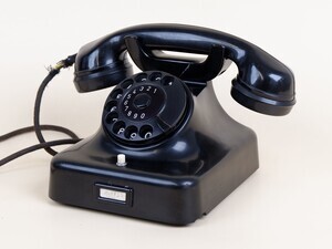 Von 1948 bis Ende 1960 war der W 48 das einfache, zuverlässige und preiswerte Standardtelefon der Deutschen Bundespost. Die Geräte wurden den Teilnehmern leihweise, gegen Gebühr, überlassen. Reparaturen waren für den Kunden kostenneutral, so dass die Bundespost, schon aus eigenem Interesse, nur qualitativ gute und solide Geräte in den Verkehr brachte. Unser Telefon wurde irgendwann wohl komplett überholt, denn die Bodenplatte gehört nicht zum Innenleben. Der Bundespoststempel auf der Bodenplatte weist eindeutig auf den Buchstaben "J" hin, der für die Firma Wiedmaier, München steht. Das komplette Innenleben, einschließlich Gehäuse, stammen aber von der Fa. DE TE WE