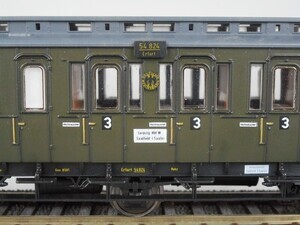 Roco 44206 C 3-achsiger Personenwagen 3. Klasse der Deutschen Reichsbahn Gesellschaft. Preußische Bauart. Aufbau mit Bremserhaus und durchgehendem Oberlichtaufbau mit Lüftern auf dem Dach. Betriebsnummer "Erfurt 54824". Die 3-achsigen preußischen Abteilwagen sind in großer Stückzahl seit Ende des 19. Jahrhunderts hergestellt worden und waren Jahrzehntelang im Nahverkehr unverzichtbar. Jedes Abteil hatte eine eigene Tür, so dass Ein- uns Aussteigen in kurzer Zeit möglich war. Wagenkasten dunkelgrün mit bunter Beschriftung, Dach dunkelgrau, Fahrgestell schwarz mit weißer und gelber Beschriftung und durchgehenden Trittbrettern. Kurzkupplungs-Kinematik. Beidseitig "Roco Kurzkupplung") Baugröße H0 (Maßstab 1:87) 2-Leiter Gleichstrom System Epoche 2 (Staatsbahn-Zeit 1920 - 1945)