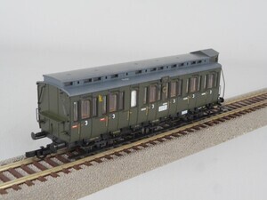 Roco 44206 C 3-achsiger Personenwagen 3. Klasse der Deutschen Reichsbahn Gesellschaft. Preußische Bauart. Aufbau mit Bremserhaus und durchgehendem Oberlichtaufbau mit Lüftern auf dem Dach. Betriebsnummer "Erfurt 54824". Die 3-achsigen preußischen Abteilwagen sind in großer Stückzahl seit Ende des 19. Jahrhunderts hergestellt worden und waren Jahrzehntelang im Nahverkehr unverzichtbar. Jedes Abteil hatte eine eigene Tür, so dass Ein- uns Aussteigen in kurzer Zeit möglich war. Wagenkasten dunkelgrün mit bunter Beschriftung, Dach dunkelgrau, Fahrgestell schwarz mit weißer und gelber Beschriftung und durchgehenden Trittbrettern. Kurzkupplungs-Kinematik. Beidseitig "Roco Kurzkupplung") Baugröße H0 (Maßstab 1:87) 2-Leiter Gleichstrom System Epoche 2 (Staatsbahn-Zeit 1920 - 1945)