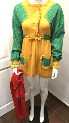 Puppe "Ute" mit braunen, feststehenden Augen und Mamastimme (defekt). Kleid (Dirndl) und Söckchen nicht original. Vorhandene Markenzeichen an Kopf und Rücken: S und Storch mit Baby auf dem Rücken.