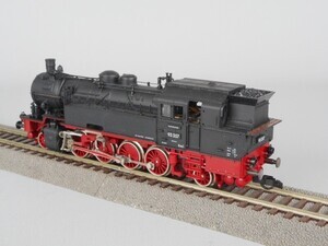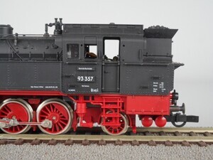 Roco H0 43250 Heißdampf-Tender-Dampflok Baureihe 93 der Deutschen Reichsbahn-Gesellschaft. Preußische Bauart (T 14), ab 1916). Betriebs-Nr. 93 357 Tender-Dampflok mit 4 Kuppelachsen und 1 Vorlauf- und 1 Nachlauf-Achse (Bauart 1´D 1´ h2). Kessel, Führerhaus und Tenderaufbau schwarz, Räder und Fahrgestell rot. Beschriftung weiß. Antrieb im Führerhaus, 4 Achsen angetrieben. Gehäuse aus Kunststoff. Je 2 beleuchtete Stirnlampen beidseitig. Radkränze und Gestänge vernickeltes Metall. An Rückseite "Roco Kurzkupplung". Original-Verpackung aus Karton mit Kunststoff-Einsatz. Beiligend Anleitung und diverse Zurüstteile. 2-Leiter Gleichstrom-System analog. Epoche 2 (Staatsbahn-Zeit (1920-1945)