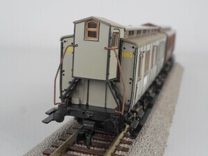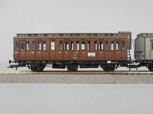 Roco 44013 2 Stück 3-achsige Personenwagen 3. und 4. Klasse der Königlich Preußischen Eisenbahn Gesellschaft. Aufbau mit Bremserhaus und durchgehendem Oberlichtaufbau mit Lüftern auf dem Dach. Durchgehende Trittbretter an den Längsseiten. Betriebsnummern 3. Kl. "829", 4. Kl. "1284". Ergänzungspackung zu Roco 43025 Sonderserie "Preußischer Personenzug mit Dampflok T 12" zum 25 jährigen Firmenjubiläum 1985 Die 3-achsigen preußischen Abteilwagen sind in großer Stückzahl seit Ende des 19. Jahrhunderts hergestellt worden und waren Jahrzehntelang im Nahverkehr unverzichtbar. Jedes Abteil hatte eine eigene Tür, so dass Ein- uns Aussteigen in kurzer Zeit möglich war. Wagenkasten dunkelbraun (3. Kl.) grau (4. Kl.) mit bunter Beschriftung, Dach dunkelgrau, Fahrgestell schwarz mit weißer und gelber Beschriftung und durchgehenden Trittbrettern. Kurzkupplungs-Kinematik. Beidseitig "Fleischmann Profi-Kupplung" (Kurzkupplung) Baugröße H0 (Maßstab 1:87) 2-Leiter Gleichstrom System Epoche 1 (Länderbahn-Zeit 1835 - 1920)