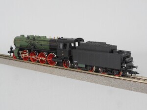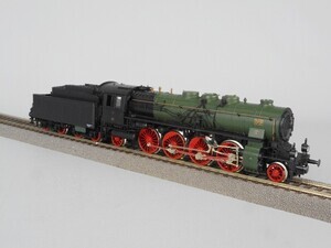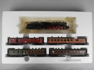 Fleischmann H0 4885 Zugpackung: "D-Zug der Preußischen Staatsbahnen" Sonderserie 1988 Der Zug stellt einen kurzen D-Zug (Schnellzug) anfang der 1920er Jahre dar. Es ist die Übergangszeit von den Länderbahnen auf die Deutsche Reichsbahn Gesellschaft ab 1920. Lokomotive und Wagen tragen noch den Anstrich der vorigen Bahngesellschaft. Personenzug-Dampflok Gattung P 10 der Preußischen Eisenbahn Verwaltung. Betriebs-Nr. 2810 Elberfeld Schlepptender-Dampflok mit 2 Kuppelachsen, 1 Vorlauf- sowie 1 Nachlauf-Achse und 4-achsigem Tender. Kessel grün mit goldener, gelber und weißer Beschriftung, Stehkessel, Führerhaus und Tender schwarz, Räder und Fahrgestell rot. Antrieb im Tender, 2 Achsen angetrieben. Gehäuse der Lok und des Tenders aus Kunststoff. Je 2 beleuchtete Stirnlampen an Lok und Tender. Radkränze und Gestänge vernickeltes Metall. Am Tender Kurzkupplungs-Kinematik und "Fleischmann Profi-Kupplung" (Kurzkupplung). 4 Stück 4-Achsige Schnellzug-Wagen mit Faltenbälgen ("Durchgangswagen"): Gepäckwagen "Halle P 01141" mit 4 Schiebetüren und Zugführerkanzel im Dach. Farbe Rotbraun mit weißer Beschriftung. Speisewagen "No. 0792" Mittelbrauner Holzaufbau mit Oberlichtaufbau auf dem Dach. Inneneinrichtung mit weißen Tischen. Dach graubraun. Personenwagen 1./2./3. Klasse "02728" Braun/dunkelgrüner Wagenkasten mit bunter Beschriftung und Zierlinien; Dach mit Oberlichtaufbau graubraun. Personenwagen 3. Klasse "03088" Wagenkasten braun mit bunter Beschriftung und Zierlinien, Dach mit Oberlichtaufbau graubraun. Original-Verpackung aus Karton mit Kunststoff-Einsatz. 2-Leiter Gleichstrom-System analog. Epoche 1 (Länderbahn-Zeit 1835 - 1920)
