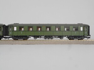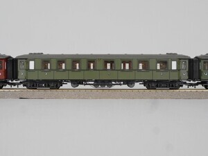 Zugpackung: "D-Zug der Königlich Württembergischen Staatsbahn", bestehend aus 5 Schnellzugwagen + Königlicher Salonwagen Sonderserie 1985 zum 140-jährigen Eisenbahn-Jubiläum Der Zug stellt einen D-Zug (Schnellzug) um 1914 dar. Die passende Dampflok Gattung "C" ist unter der Inv. Nr. "MM 0110-2020" geführt. 6 Stück 4-Achsige Schnellzug-Wagen mit Faltenbälgen ("Durchgangswagen"): Salonwagen A15 Wagenkasten blau mit goldener Linierung und Beschriftung. Dach braungrau, Wagenkasten schwarz. Personenwagen ABBü 1./2. Klasse. Wagenkasten grün mit bunter Beschriftung. Dach graubraun. Personenwagen ABCü 1./2./3. Klasse grüner Wagenkasten mit bunter Beschriftung, Dach graubraun. Personenwagen BCCü 2./3. Klasse Wagenkasten braun mit bunter Beschriftung , Dach graubraun. 2 x Personenwagen CCü 3. Klasse. Wagenkasten braun mit bunter Beschriftung, Dach graubraun. Original-Verpackung aus Karton mit Kunststoff-Einsatz. Zurüstteile (Dachlüfter) nicht montiert. Befinden sich in separater Verpackung. 2-Leiter Gleichstrom-System analog. Epoche 1 (Länderbahn-Zeit 1835 - 1920)