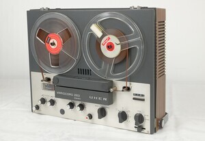 Das Uher Variocord 263 Stereo gehört mit zu den Spitzengeräten, die Uher in den Jahren 1969 - 1971 herstellte. Die Bandmaschine kann liegend, stehend oder auch an der Wand hängend betrieben werden. Die Maschine verfügt über drei Bandgeschwindigkeiten, (4.7/9,5/ 19cm/sec). Spulengrößen bis 18 cm Durchmesser sind abspielbar. Unser Gerät verfügt über einen 4 Spur Tonkopf mit Steckverbindung, so dass er gegen einen 2 Spur Einheit ausgetauscht werden kann. Mit der eingebauten Endstufe ist das Tonband sofort einsatzbereit. Der Betrieb ist in Mono und in Stereo möglich. Alle Bedienelemente befinden sich an der Vorderseite. Auf der Rückseite sind Anschlüsse für Stereo Lautsprecher, Stereo Microfone, Ein/Ausgang für Radio und Plattenspieler. Ein abnehmbar Plastikdeckel schützt das Gerät. Der Anschaffungspreis lag bei 630 DM