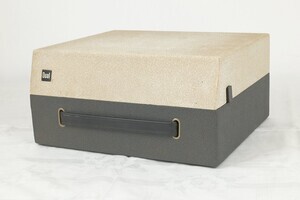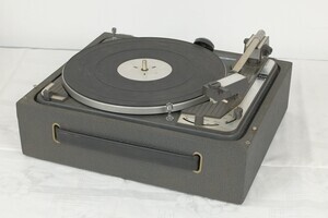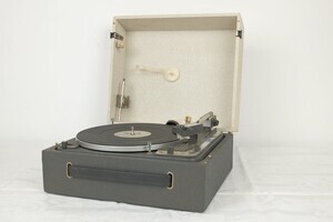Ein tragbarer Plattenspieler (Koffergerät) von Dual aus den Jahren 1964 - 1966. Das mit grauen Lederimitat bezogene Holzgehäuse, ist mit einem beigefarbenen Deckel verschlossen. Es können Platten mit Geschwindigkeiten von 16/33/45und 78 UpM abgespielt werden. Die Umdrehungsgeschwindigkeit von 16 UpM wurde für Sprechplatten (Hörspiele/Kinderbücher) benötigt. Das Gerät ist mit einem Plattenwechseler ausgestattet, der es ermöglicht, ohne nachzuladen, bis zu 10 Platten nacheinander abzuspielen.