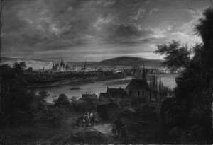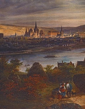 Vor der Mitte des 19. Jahrhunderts malt Augustin Gustav Lasinsky (1811-1870), von der linken Moselseite aus, eine Ansicht von Trier. Flussaufwärts schweift der Blick über das Dorf Pallien mit seinem barocken Kirchlein auf die in der Abendsonne leuchtende Stadt. Domgruppe, Basilika und Marktkirche St. Gangolf ragen aus dem Siedlungsgefüge heraus. Proportionale Übersteigerung des sakralen Ortszentrums, stimmungsvolle Lichtregie und malerische Motivwahl machen die romantische, religiös-konservative Grundhaltung des Malers und seine besondere Beziehung zu Schöpfungen des christlichen Mittelalters deutlich. Mit der intakten Darstellung zweier eigentlich ruinöser Türme der Stadtmauer am Moselufer nahe der Römerbrücke, liefert er vor dem Hintergrund eines öffentlichen Meinungsstreites über die Erhaltung der Denkmäler ein Bekenntnis zum architektonischen Erbe der Stadt, welche wenig später trotz alledem abgerissen wurden.