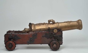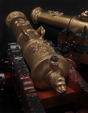 Urkundlicher Überlieferung zufolge wurden die Salutkanonen auf der Festung Ehrenbreitstein bei Koblenz von dem Zimmermann Kindt und dem Geschützgießer Johannes Bapst gefertigt, der zwei der ursprünglich zwölf 56 cm langen Bronzerohre (Kaliber 42 mm) signierte: "Johann Bapst goß mich auf Ehrenbreitstein 1749." Die Rohre besitzen Zündzapfen in Form von Hundeköpfen. Die Oberseiten zieren zwei Henkel in Gestalt von Delfinen, das Amtswappen des Kurfürsten Franz Georg von Schönborn sowie eine Kartusche mit dessen Monogramm. Beweglich sind die prächtigen "Stückelger" durch hölzerne, mit eisernen Zierbeschlägen verstärkte Lafetten auf vier Rädern mit eisernen Stollenreifen.