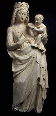 Die Statue gelangte wohl auf dem Flussweg der Mosel mitsamt vergleichbarer Bildwerke im 14. Jahrhundert nach Trier, wo private und öffentliche Gebäude im Zuge von Wirtschaftsaufschwung und Bevölkerungswachstum von hohen Geistlichen und Bürgern mit religiösen Kunstwerken ausgestattet wurden. Die verfeinerten städtischen Lebensformen der Epoche spiegeln sich in der Figur der Madonna wieder. Im späten Mittelalter war die Darstellung der Maria mit dem Christuskind aufgrund einer stark angewachsenen Marienverehrung überaus beliebt, zahlreiche Figuren der Madonna aus der Zeit der Gotik sind daher bis heute erhalten. Die Figur stammt aus dem Kloster in Machern an der Mosel.