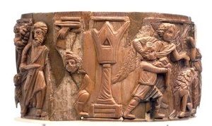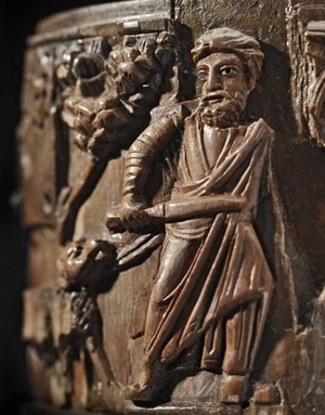 Mit der Gebärde von Betenden, mit zum Himmel erhobenen Händen stehen die drei Jünglinge im Feuerofen auf der Elfenbeindose. Fragmentarisch erhalten ist Abraham, der gerade seinen Sohn Isaak zu opfern beabsichtigt, als Gott in höchster Not eingreift. In der nächsten Szene bringt Habakuk, von einem Engel begleitet, dem in der Löwengrube gefangenen Daniel das Brot. Schon aufgrund ihres Materials muss die Elfenbeinpyxis aus dem Arenakeller des Trierer Amphitheaters zur Aufbewahrung einer Preziose gedient haben. Kostbare Elfenbeinfunde wie dieser sind in Trier höchst selten.