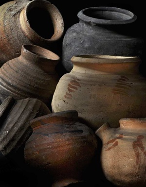 Ein von ca. 1180 bis bald nach 1190 vergrabener Münzschatz aus dem Bereich des Klosters St. Irminen in Trier war auf sieben Tongefäße verteilt. Sie zeigen das Spektrum der Gefäßkeramik des Hochmittelalters im mittleren Rheinland unmittelbar vor dem Aufkommen des Steinzeugs, einer robusteren Art von Töpferware. Von den Gefäßen aus St. Irminen gehören drei Exemplare noch zu jenen Gattungen irdener Keramik, die vom 10. bis 12. Jahrhundert gebräuchlich waren. Ein Kugeltopf und ein Kugelkännchen aus gelbem Ton mit roten Pinselstrichen repräsentieren die sogenannte Pingsdorfer Ware. Ein hartgebrannter Kugeltopf, der durch Rauch vollständig geschwärzt ist, vertritt die sogenannte Reduktionskeramik. Vier wirtelförmige braungraue Becher mit geriefter Oberfläche, von denen drei noch Spuren von Bemalung Pingsdorfer Art aufweisen, besitzen infolge eines bei höheren Temperaturen gebrannten Tonmaterials dagegen einen sehr viel dichteren Ton. Damit stellen sie bereits eine Frühform von Steinzeug dar.