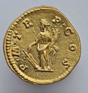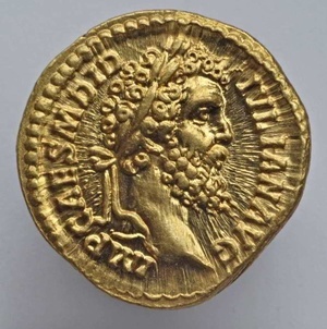 Die Vorderseite der goldenen Münze zeigt den Kaiser Didius Julianus bärtig und mit Lorbeerkranz nach rechts und eine Umschrift mit seiner Titulatur. Auf der Rückseite ist die Göttin Fortuna mit einem auf einer Kugel ruhenden Steuerruder und überquellendem Füllhorn abgebildet, ebenfalls mit Umschrift. Fortuna gilt als Schicksalsgöttin, die auf einen glücklichen Ausgang bedacht war, dem Kaiser aber kein Glück brachte. Zwar gelang es ihm, sich den Kaiserthron zu erkaufen, doch wandten sich das Volk und der Senat bald gegen ihn und er wurde nach nur 66 Tagen im Amt erschlagen. Münzen mit seinem markanten Porträt sind daher äußerst selten. Die Münze ist Bestandteil des im Jahre 1993 in Trier entdeckten Goldschatzes.