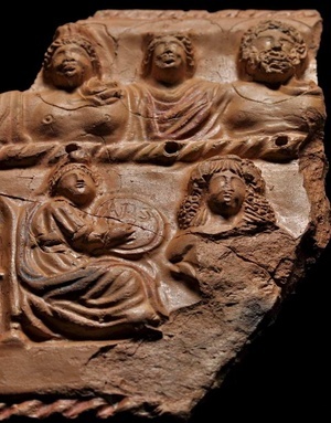 Steckkalender gehören zu den interessanten Gebrauchsgegenständen des römischen Alltags. Das Stecksystem erlaubte dem Benutzer, die einzelnen Tage mit einem Stift zu markieren. In der oberen Zeile des Kalenders haben sich die beiden jugendlichen Götter Merkur mit Flügelhut und Mars mit Helm sowie der bärtige Göttervater Jupiter erhalten. Die untere Reliefzeile ist den vier Jahreszeiten vorbehalten. Zu sehen sind die Personifikationen des Frühlings, des Sommers mit Halskette und des Herbstes mit Trauben in den Haaren; weggebrochen ist die Personifikation des Winters. In ihrer Mitte befindet sich eine thronende Göttin, die ars - Kunst auf einen Schild schreibt. Vermutlich handelt es sich um die Stadtgöttin Treveris, der Beschützerin Triers und seines Kunsthandwerks. Entlang der Seitenkanten links und rechts waren entsprechend der zu- oder abnehmenden Mondphase je 15 Stecklöcher für die einzelnen Tage des Monats aneinandergereiht.