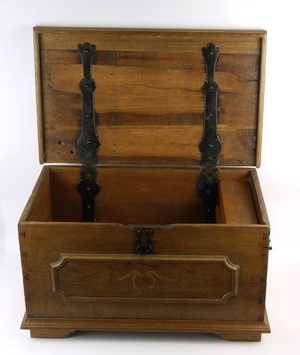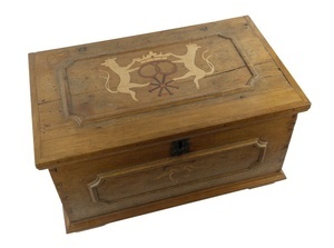 Tischlerarbeit von 1760 stark restauriert Einlegearbeit auf dem Deckel