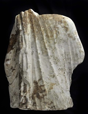 Der klassisch-griechische Stil lässt sich in dem nur noch fragmentarisch erhaltenen Bildwerk erkennen. Die Figur ist mit einem enganliegenden Mantel bekleidet, der an einigen Stellen am Körper zu kleben scheint als ob er nass wäre und dadurch fast durchsichtig wirkt. Für eine römische Bürgerin wäre diese Art der Darstellung ungewöhnlich, daraus lässt sich schließen, dass es sich um die Darstellung einer Muse handelt.