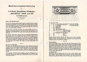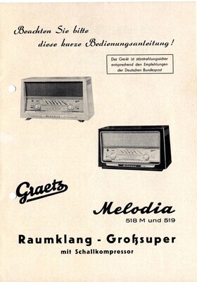 Gebrauchsanleitung Radio Graetz Melodia 518M und 519