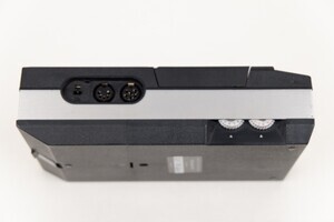 Ein kleiner Cassetten Recorder, in schwarzer Tragetasche, die als Zubehör erhältlich war. Produziert ca. 1968 von Philips in Holland. Die Funktionen Start/Stopp, Vor- und Rücklauf werden über eine einzige Taste gesteuert. Zusammen mit dem Aufnahmeknopf und der Aussteuerungsanzeige sind dies die einzigen Bedienelemente des Recorders. Seitlich sind die externen Anschlüsse eingebaut, sowie zwei Drehregler mit denen die Lautstärke und Eingangsempfindlichkeit für die Aufnahme gesteuert werden. Das Gerät ist sehr gut erhalten und ist mit 5 x 1,5 Volt Batterien funktionsfähig.
