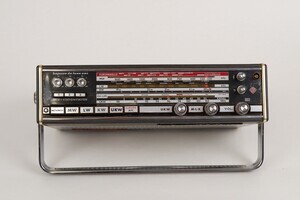 Der Transistor Empfänger, Bajazzo de Luxe 201 von Telefunken, ist für den stationären, tragbaren und Autobetrieb konzipiert. Die Stromaufnahme erfolgt über 220 V (ext. Netzteil) , 6x 1,5 Volt Batterien oder über den 12 Volt Autoanschluss. Im Bedienfeld fallen die großen Drucktasten auf, die dem wählen der Wellenbereiche, UKW/MW/LW und KW dienen. Mit an Bord sind drei Tasten mit denen sich vorgewählte UKW-Sender fixieren lassen. Mit den Drehknöpfen werden die Sender und die Klangfarbe reguliert. Das Kofferradio kostete im Laden ca. 280 DM Die Anschlüsse für externe Geräte sind seitlich angeordnet. Dazu gehören Plattenspieler, Tonband, Zweitlautsprecher und Stromanschluss.