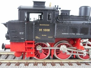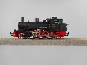 Liliput 9102 Tender-Dampflok Baureihe 91 der Deutschen Reichsbahn Gesellschaft. Betriebs-Nr. 91 1008 Bauzeit ab 1900 für die Preußische Staatseisenbahn, Gattung T9.3 , 2060 Lokomotiven wurden gebaut. Tender-Dampflok mit 3 Kuppelachsen, 1 Vorlaufachse. Kessel, Führerhaus und wasserkästen schwarz mit goldener und weißer Beschriftung, Räder und Fahrgestell rot. Antrieb im Führerhaus auf 3 Achsen. Gehäuse, Fahrgestell und Räder aus Zinkdruckguss. Je 2 beleuchtete Stirnlampen. Radkränze und Gestänge vernickeltes Metall. Standard-Bügelkupplung. Original-Verpackung aus Karton mit Kunststoff-Einsatz. Beiligend Anleitung. 2-Leiter Gleichstrom-System analog. Epoche 2 (Staatsbahn-Zeit 1920 - 1945)