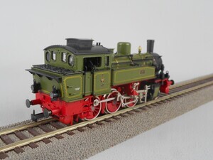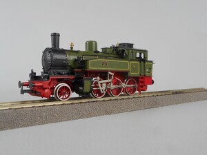 Liliput 9101 Tender-Dampflok Gattung T9.3 der Königlich Preußischen Eisenbahn-Verwaltung (K.P.E.V.). Betriebs-Nr. 7367 Bauzeit ab 1900 für die Preußische Staatseisenbahn, Gattung T9.3 , 2060 Lokomotiven wurden gebaut. Tender-Dampflok mit 3 Kuppelachsen, 1 Vorlaufachse. Kessel, Führerhaus und Wasserkästen grün mit schwarz-goldener und gelber Beschriftung und gelben Zierlinien, Räder und Fahrgestell rot. Antrieb im Führerhaus auf 3 Achsen. Gehäuse, Fahrgestell und Räder aus Zinkdruckguss. Je 2 beleuchtete Stirnlampen. Radkränze und Gestänge vernickeltes Metall. Standard-Bügelkupplung. Original-Verpackung aus Karton mit Kunststoff-Einsatz. Beiligend Anleitung. 2-Leiter Gleichstrom-System analog. Epoche 1 (Länderbahn-Zeit 1835 - 1920)