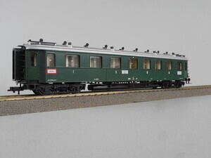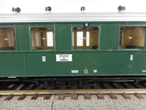 Liliput 84801 4 achsiger Schnellzugwagen 1./2./3. Klasse der Badischen Staats-Bahn. Faltenbälge an den Stirnseiten zum geschützten Übergang in den nächsten Wagen "Durchgangswagen"; "D-Zug". Wagenkasten grün mit bunter Beschriftung, Dach silbern; Fahrgestell schwarz mit bunter Beschriftung und 2 Gasbehältern. Betriebsnummer "ABCCü 101". Ausgestattet mit Speichenrädern in Drehgestellen und Kurzkupplungs-Kinematik. Beidseitig "Fleischmann Profi-Kupplung" (Kurzkupplung). In originaler Verpackung. Nenngröße H0 (Maßstab 1:87), 2-Leiter Gleichstrom-System Epoche 1 (Länderbahn-Zeit 1835 - 1920)