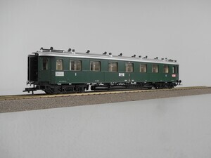 Liliput 84701 4 achsiger Schnellzugwagen 1./2. Klasse der Badischen Staats-Bahn. Faltenbälge an den Stirnseiten zum geschützten Übergang in den nächsten Wagen "Durchgangswagen"; "D-Zug". Wagenkasten grün mit bunter Beschriftung, Dach silbern; Fahrgestell schwarz mit bunter Beschriftung und 2 Gasbehältern. Betriebsnummer "ABBü 13889". Ausgestattet mit Speichenrädern in Drehgestellen und Kurzkupplungs-Kinematik. Beidseitig "Fleischmann Profi-Kupplung" (Kurzkupplung). In originaler Verpackung. Nenngröße H0 (Maßstab 1:87), 2-Leiter Gleichstrom-System Epoche 1 (Länderbahn-Zeit 1835 - 1920)