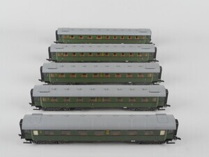 Liliput 811 3 Stück 4-achsige Personenwagen + 1 kombinierter Post/Gepäckwagen der Königlich Preußischen und Großherzoglich Hessischen Staats-Eisenbahn. Bauart Langenschwalbach. Gebaut für die "Aartalbahn zwischen Dietz, Wiesbaden und Langenschwalbach. Diese Strecke war sehr kurvenreich, daher wurden Personenwagen mit Drehgestellen mit besonderer Kurvengängigkeit entwickelt. Betriebsnummern Wagenaufbau Mainz 3771 (4. Klasse) Grau Mainz 1414 (2./3. Klasse) Rotbraun/Grün Mainz 2571 (3. Klasse) Rotbraun Mainz 4995 P. Post Rotbraun/Grün 4- achsige Drehgestell-Personen-Wagen. Wagenaufbau mit bunter Beschriftung. Einstiegsbühnen und hohe gewölbte dunkelgraue Dächer. Speichenräder. Kurzkupplungs-Kinematik. Fleischmann "Profi-Kupplungen" (Kurzkupplungen). 2-Leiter Gleichstrom-System (isolierte Achsen) Nenngröße H0 (Maßstab 1:87) Epoche 1 (Länderbahn-Zeit 1835 - 1920)